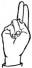 На ћирилици написано САВА КОСИЋ састоји се из 9 слова [?]. Исписано ћириличном једноручном азбуком за глувонеме:
